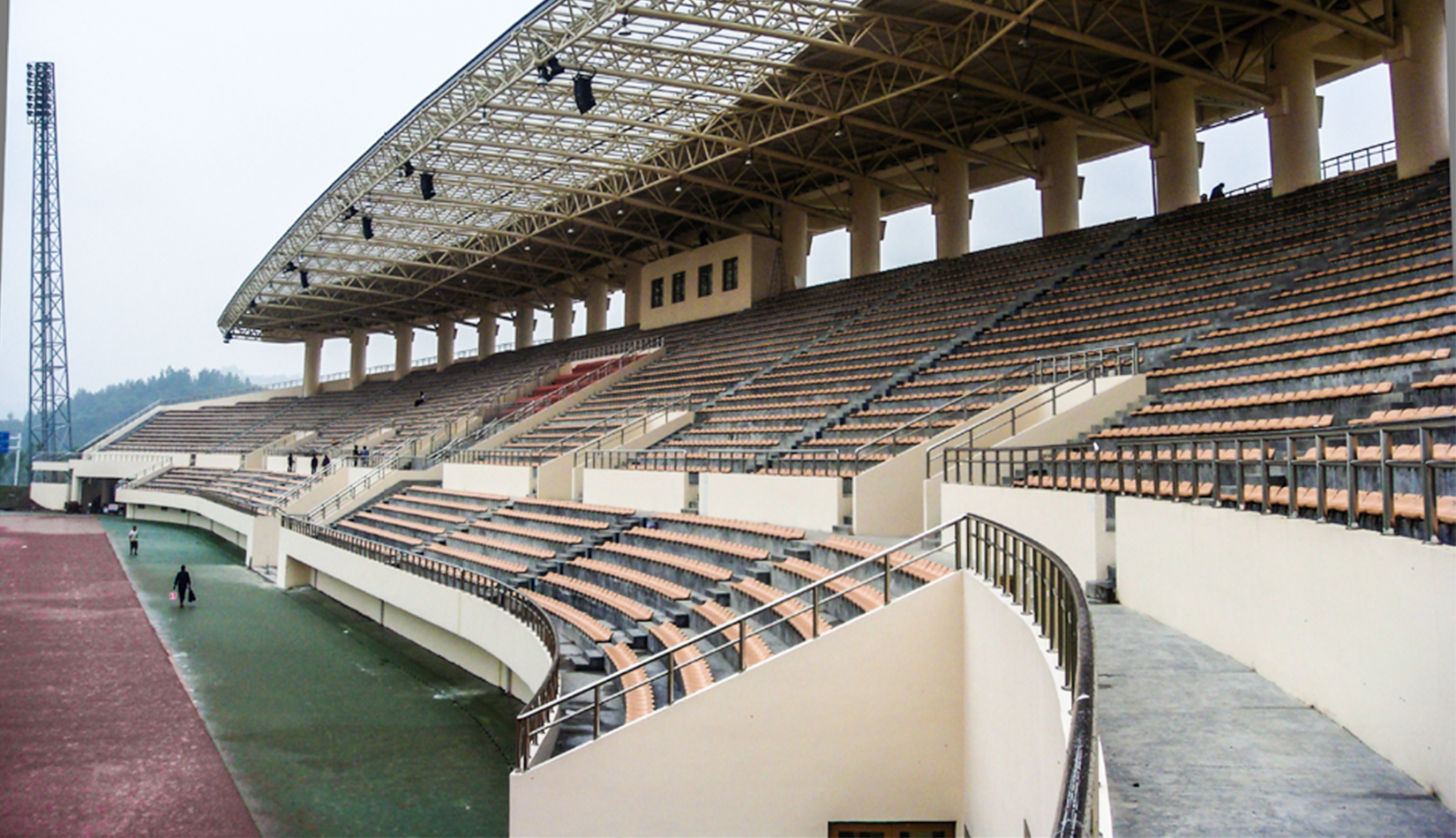 北川羌族自治縣體育中心位于新縣城南端的95 號街坊內(nèi),用地面積5.6 公頃,現(xiàn)狀地形平坦。北側(cè)為濱河路,毗鄰永昌河公園景觀帶,西側(cè)為禹龍路,隔路與安昌河相望,東側(cè)為貫穿新縣城的交通干道- 齊魯大道,用地四周環(huán)路,交通便利,地處北川新縣城的南門戶,是進入縣城的標(biāo)志性建筑。