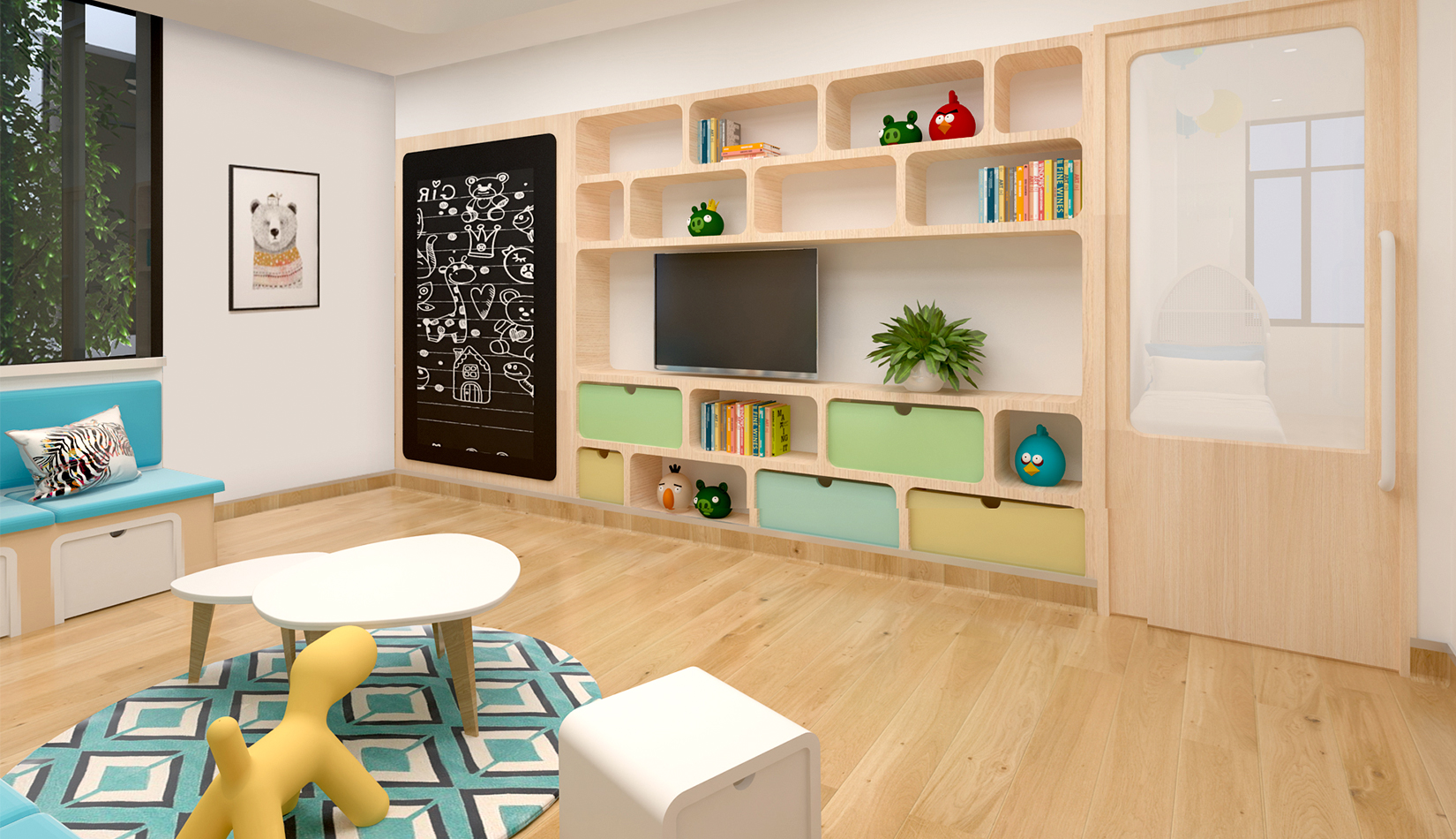 室內(nèi)延續(xù)建筑,空間內(nèi)部采光非常好。設(shè)計(jì)簡潔、現(xiàn)代,以白色為主色調(diào),搭配淺木色作為室內(nèi)顏色?;顫?、好動(dòng)、天真、可愛是兒童最大的特點(diǎn),在其具體功能空間設(shè)計(jì)中,我們把這些特點(diǎn)和空間色彩結(jié)合起來,不同的空間根據(jù)其使用功能,采用了不同的色彩搭配。