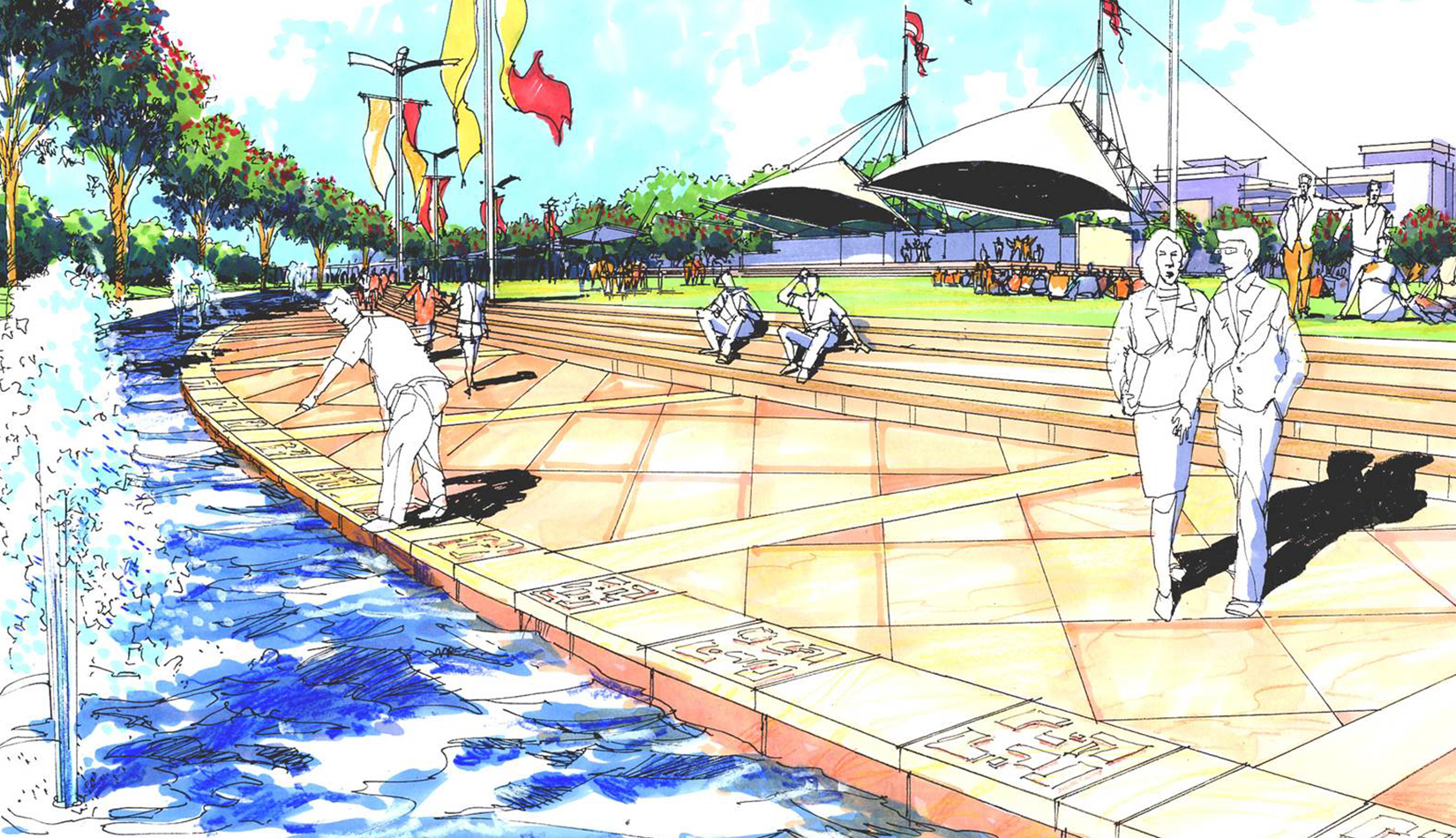 本著“文化著陸于自然”、“邊界突出聯(lián)系”的設(shè)計(jì)理念,規(guī)劃將灣島全線自西向東分為濱海運(yùn)動(dòng)休閑、親水廣場(chǎng)、公共藝術(shù)公園、人與自然公園和碼頭休閑娛樂5 個(gè)景區(qū),為基地北側(cè)的城市功能區(qū)乃至黃島區(qū)提供了一片高品質(zhì)的、現(xiàn)代濱海城市休閑景觀帶,增強(qiáng)區(qū)域的軟環(huán)境競(jìng)實(shí)力。