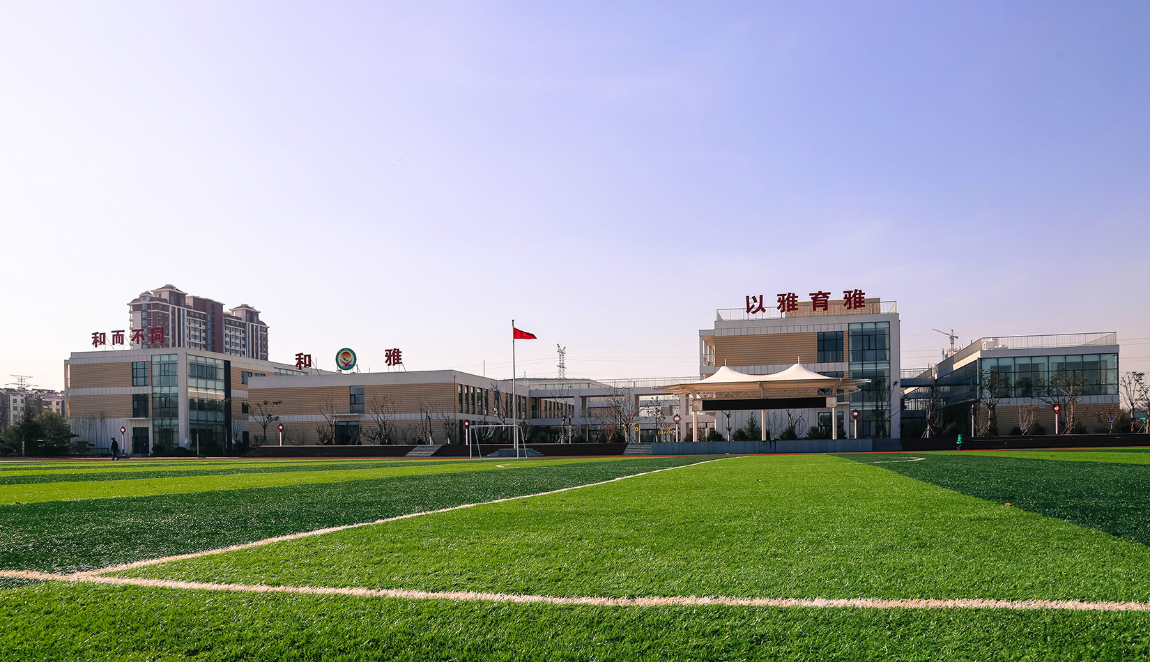 該項(xiàng)目通過幾個(gè)建筑單體與架空走廊的穿插連接將整個(gè)校區(qū)有機(jī)聯(lián)系起來,實(shí)現(xiàn)了建筑功能的整體性,完善了建筑可達(dá)性。形成的中庭空間可成為交流為主的平臺(tái),營造了學(xué)習(xí)、活動(dòng)為一體的校園氛圍。建筑外立面以簡潔的現(xiàn)代風(fēng)格為主,同時(shí)表現(xiàn)校園文化,主要采用黃色與白色真石漆形成色彩對比,在教室南立面、樓梯間、就餐區(qū)等采用整體通透的玻璃幕墻與實(shí)墻形成虛實(shí)對比,形成簡潔而不失活潑的建筑風(fēng)格。利用借景等手法進(jìn)行室外綠化設(shè)計(jì),整體打造一個(gè)高品質(zhì)的學(xué)校環(huán)境。