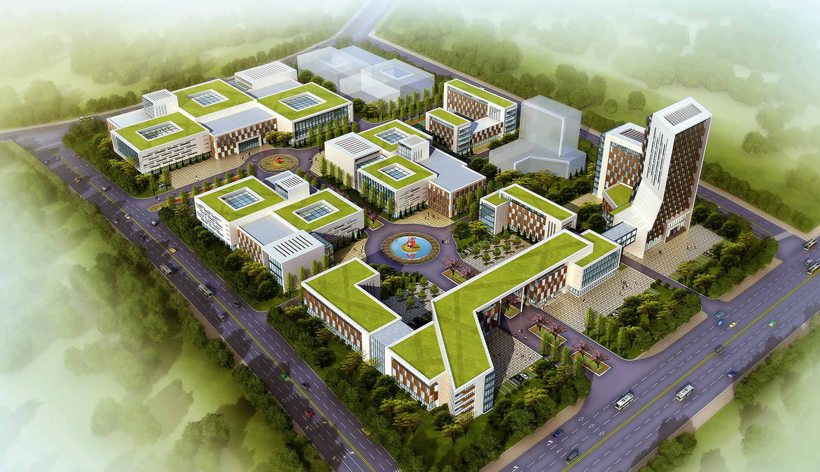 設(shè)計中著重實現(xiàn)“產(chǎn)業(yè)有核體”理念。依據(jù)功能不同,各自以庭院、廣場的形式形成獨立核心。以類似“綜合體”的形式實現(xiàn)各自功能分區(qū)的獨立完整。兩大功能核心體主軸線體系為基礎(chǔ)進行串聯(lián),在保證相互間直達性的同時又互不干擾。