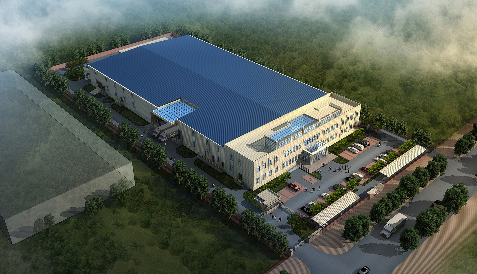 本項目規(guī)劃設(shè)計各功能區(qū)分布合理,便于生產(chǎn),流程合理,適合高效運營,具備一定靈活性,易于改造以適應(yīng)不斷變化的要求。單體建筑周邊預(yù)留擴展空間,適合長遠發(fā)展需求。展示了高科技、國際化公司形象。