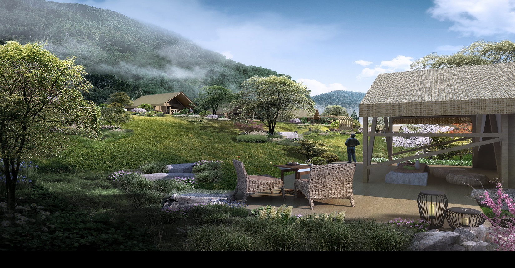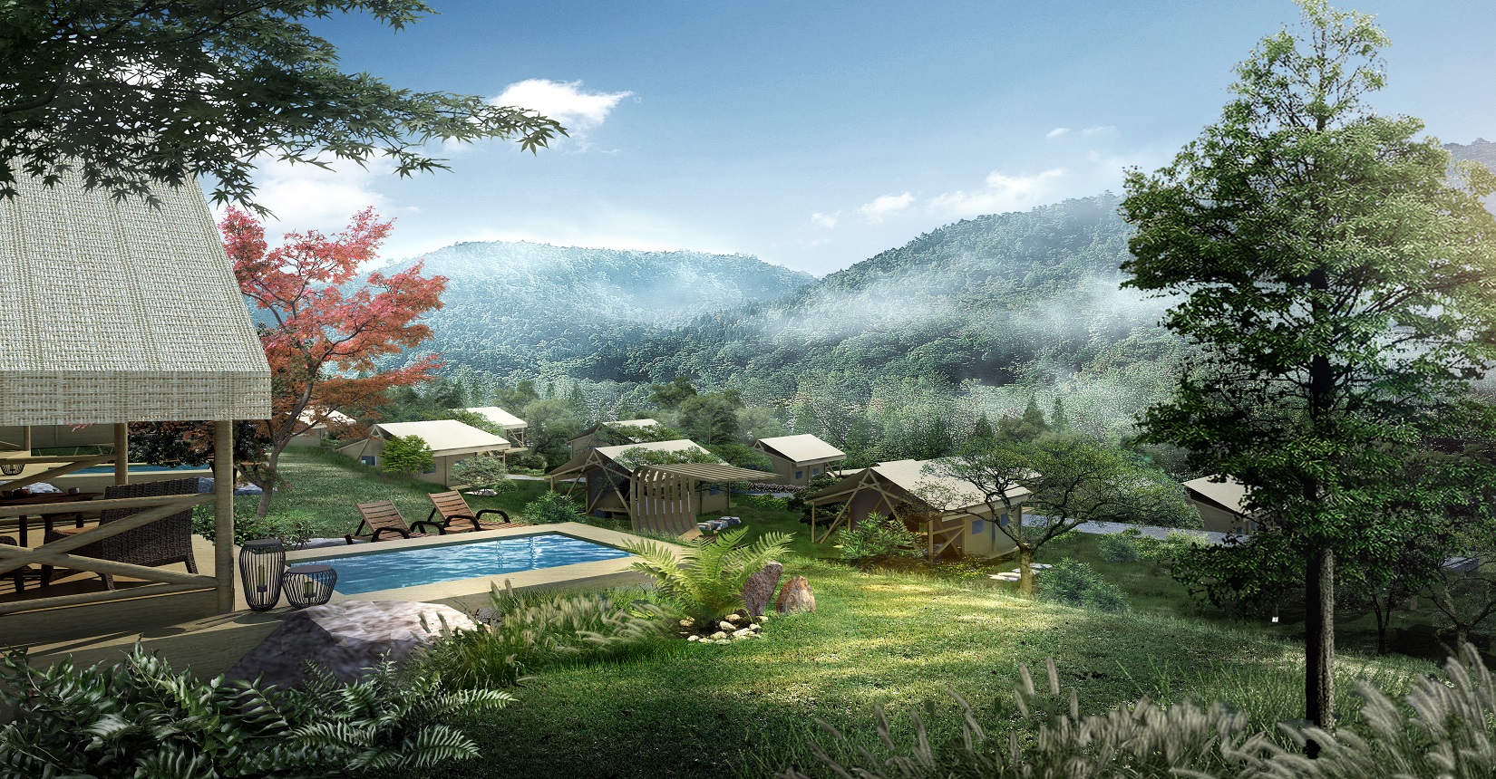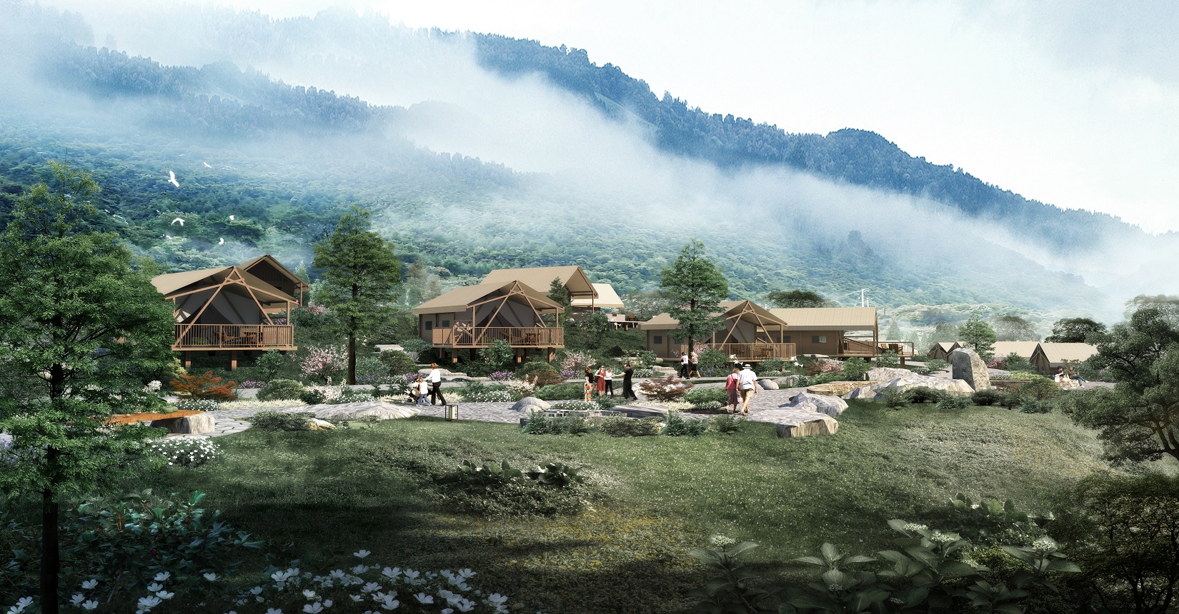 本項(xiàng)目的定位為自然、野奢的景觀風(fēng)格。對于野奢度假酒店景觀環(huán)境設(shè)計(jì)遵從“野”“奢”兩點(diǎn),融入荒野生態(tài)的設(shè)計(jì)理念,又要與場地相融合、與原生態(tài)相映、與當(dāng)?shù)氐拿袼罪L(fēng)情相交匯,突出當(dāng)?shù)氐奈幕黝},強(qiáng)調(diào)高品質(zhì)的自然、野奢度假,從而打造出一個(gè)具備個(gè)性與特色,使游客能夠享受到自然野趣體驗(yàn)的景觀環(huán)境。